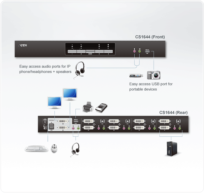 ATEN CS1644 4-Port USB 2.0 DVI Dual View KVMP™ Switch | A399