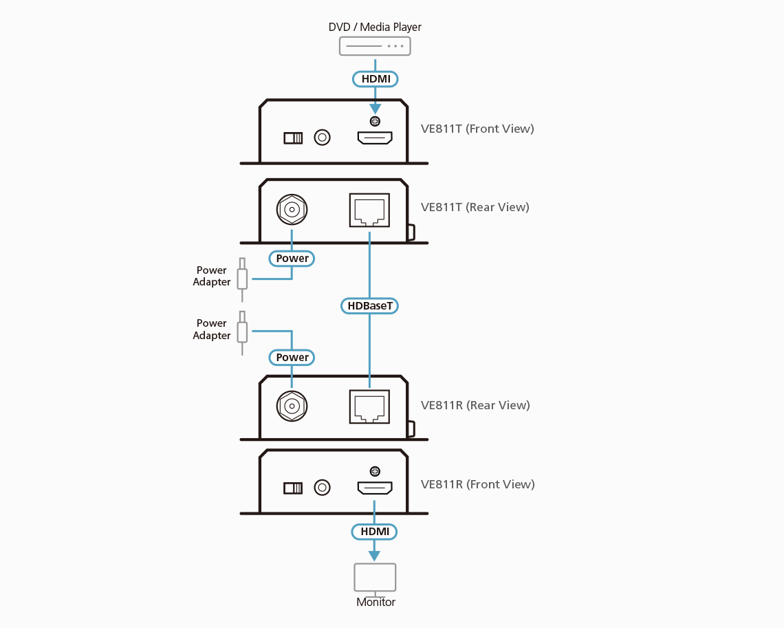Pushing the technology and design to the limit, the compact design makes the VE811T easy to mount in any location. Engineered for today’s digital trends, the VE811T is ideal for meeting rooms, or any setting that requires high quality HDMI video to be extended for great distances.