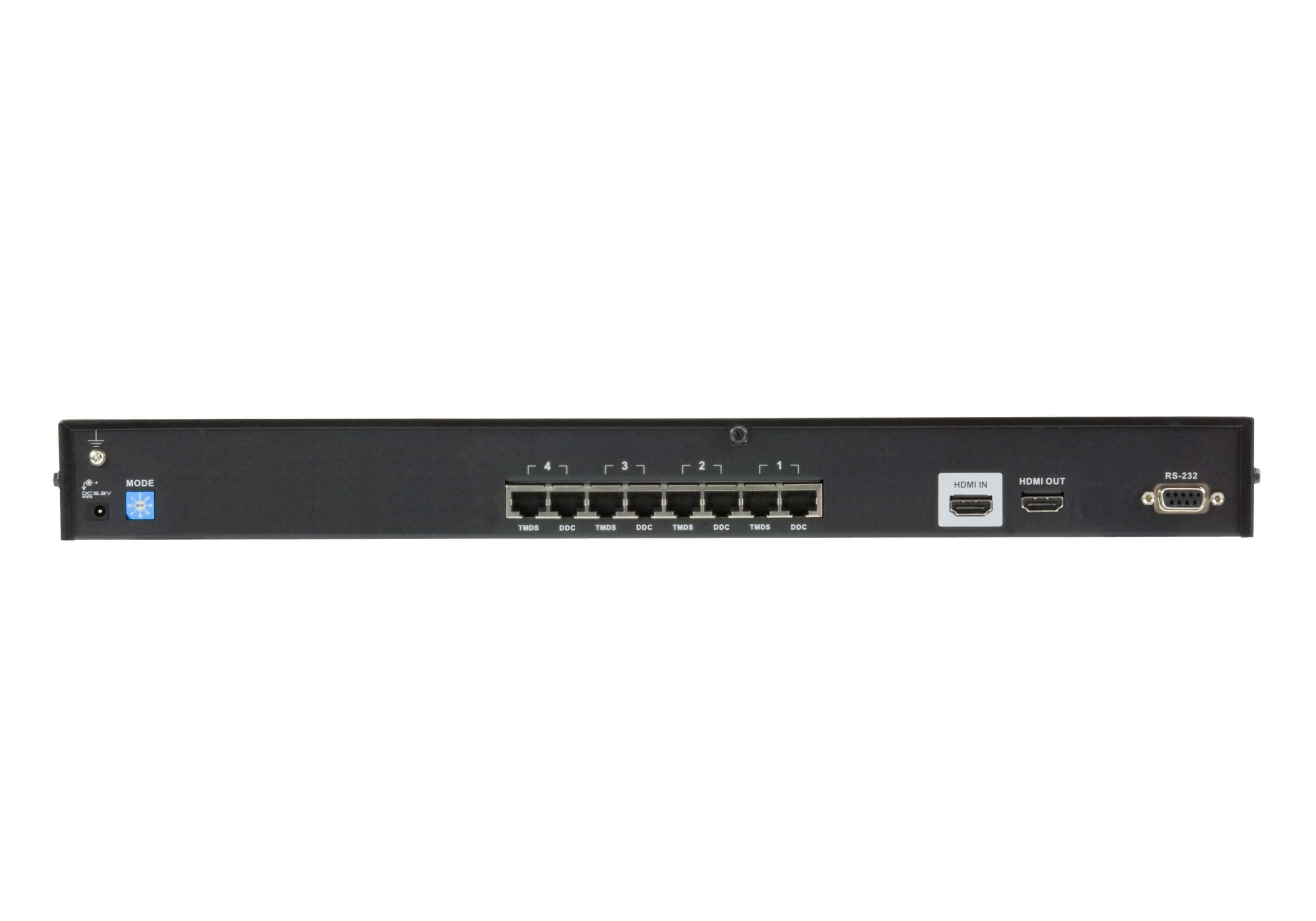 - One HDMI input to 4 HDMI outputs via Cat 5e cables