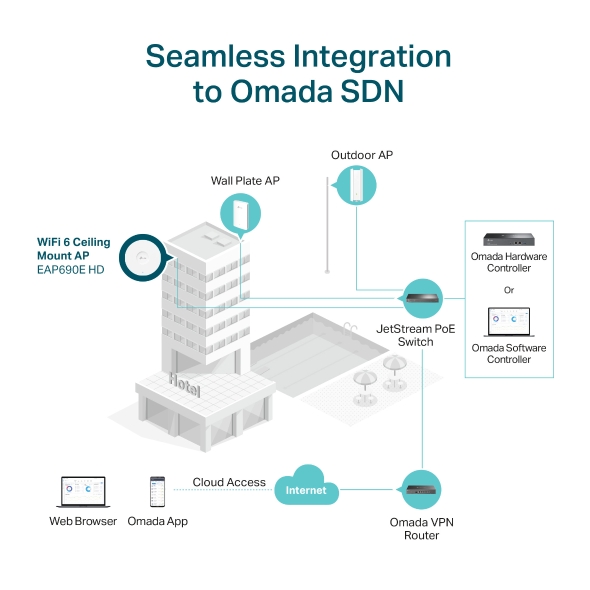 • Centralized Management: Cloud access and the Omada app offer ultra convenience and easy management.